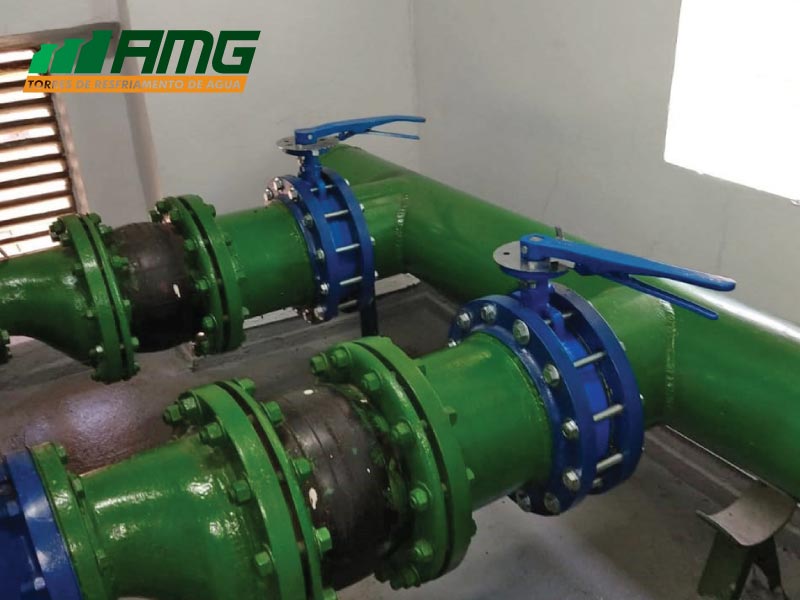 Prestação de serviço de instalação de válvula wafer em tubulação de torre de resfriamento de água.