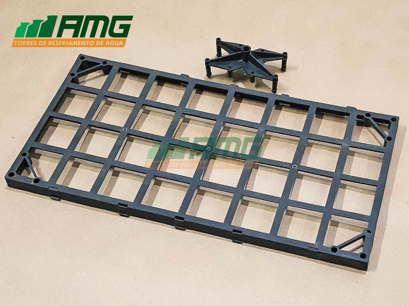 El relleno de contacto suministrado por AMG, también conocido como relleno de bandeja, o relleno de cuadrícula, forma parte también de la familia de rellenos, cuyo efecto de enfriamiento se da por el salpicado del agua caliente dentro de la torre.